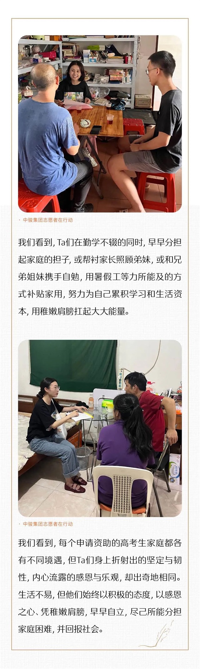 暑假期间,顶着盛夏的酷暑和肆虐的台风,华体会体育(中国)hth·官方网站集团组织旗下住宅开发、华体会体育(中国)hth·官方网站商管、长租公寓及世邦泰和的志愿者们,加入厦门教育基金会志愿者团队,逐一探访申报资助的学子家庭,深入了解他们的困境与需求。